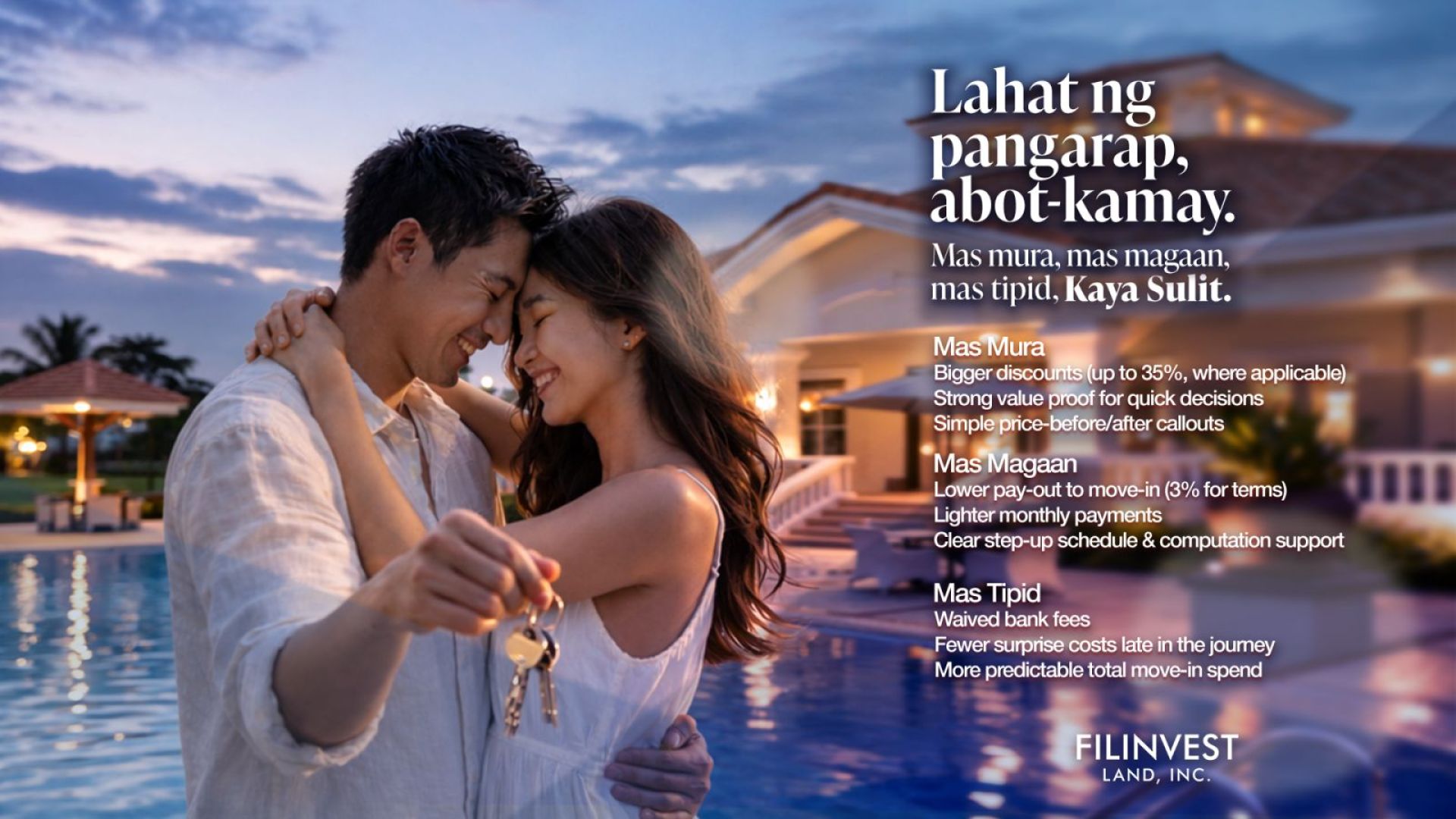 With Kaya-Sulit, Filinvest Land reaffirms its long-standing commitment to helping Filipino families secure not just a home, but a foundation for a better future. By removing financial barriers and simplifying the path to ownership, the company continues to transform long-held aspirations into real opportunities—empowering more Filipinos to finally move in, move forward, and build the life they have always dreamed of.